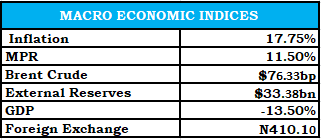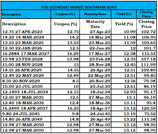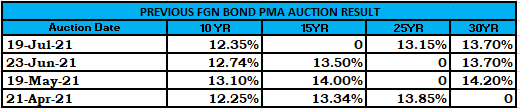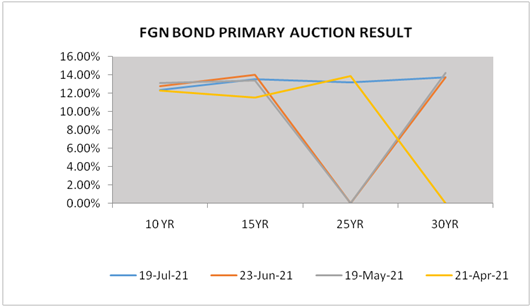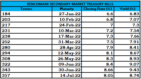 FGN bonds secondary market recorded a bullish session as the average bond yield across the curve cleared lower by 13 bps to close at 9.25 % from 9.38 % previous day. Average yields across short tenor and long tenor of the curve declined by 18 bps and 3 bps, respectively. However, the average yield across the medium tenor of the curve increased by 8 bps.The FGNSB 16-OCT-2021 bond was the best performer with a decline in yield of 95 bps, while the 23-FEB-2028 maturity bond was the worst performer with an increase in yield of 17 bps.