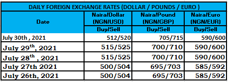 Dollar to Naira having a ₦5 fall to ₦ 515.00 as against #520.00 previous day. This corresponds to 0.96% fall compared to previous day. The rate had dropped following the announcement of the ban placed on the sale of forex to BDC operators in Nigeria by the CBN Governor, Godwin Emefiele.